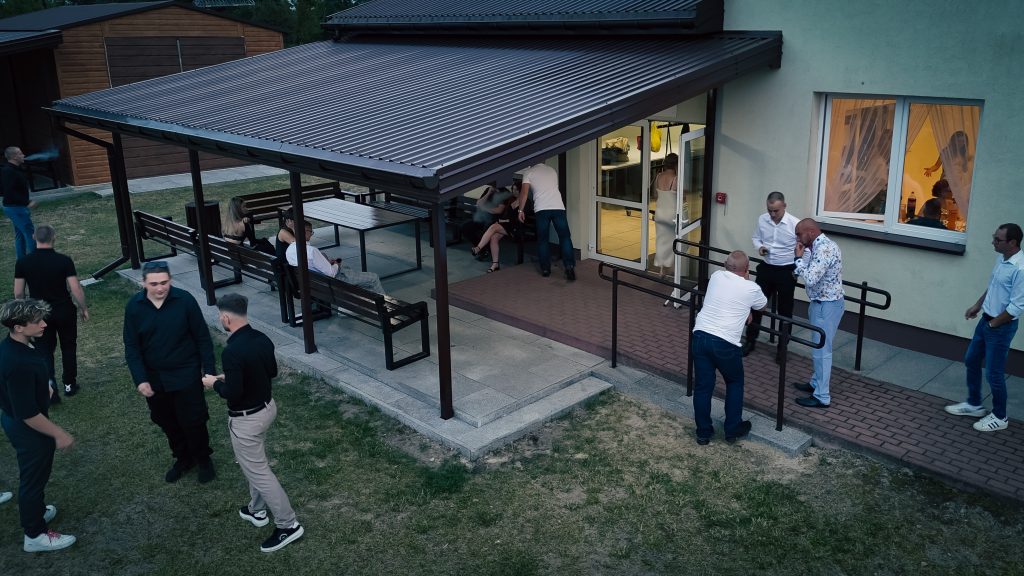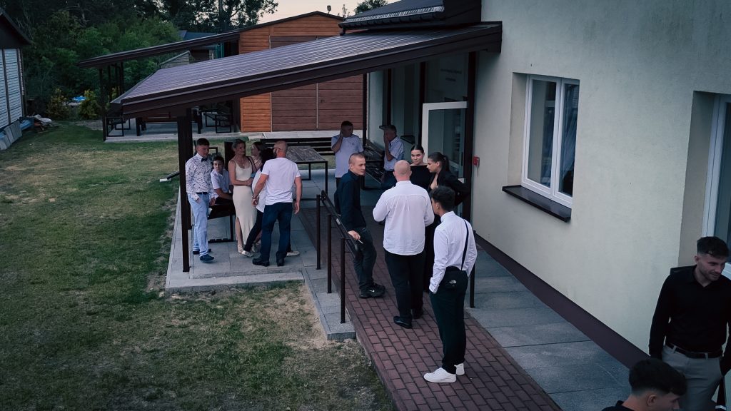 Materiał obejmuje ujęcia z lotu ptaka przedstawiające gości przybywających na wydarzenie, wspólne rozmowy oraz momenty spędzone podczas przyjęcia. Dzięki ujęciom z drona możliwe było uchwycenie całej przestrzeni wydarzenia oraz pokazanie imprezy z zupełnie innej perspektywy.