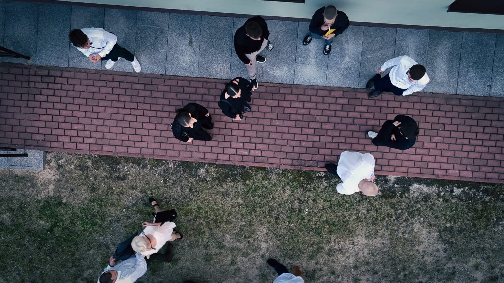 - ujęcia z drona przedstawiające gości i miejsce wydarzenia
